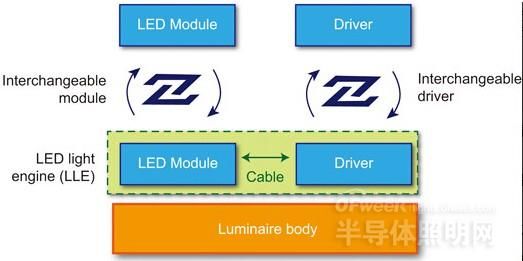 过去LED灯泡仅出现在高级车之中,近来受惠于高功率LED灯泡的良率提升,以及单品价格快速下跌,使得车外LED照明逐渐从高阶车款转移至中阶车款之中,也让车外照明市场呈现稳定发展。LEDinside预估,光是LED灯泡在远近灯与雾灯应用的市场产值,可望在2018年达到3.13亿美元,至于日行灯则在受惠于各国法规的实施,未来5年复合成长率亦高达21%。 Zhaga标准出炉 元件可互换时代来临 尽管在LED照明应用规模愈来愈大,但是各品牌之间LED模块、LED驱动器不兼容的问题,造成LED灯具业者一旦更换元件供应商,灯具规格就得随之改变,对灯具生产过程是很大的困扰。全球照明产业为解决上述问题,达成生产标准规格的照明产品,便联手成立Zhaga国际联盟,寄望制订出一套LED照明灯具的统一接口规格,作为LED元件供应商的参考。